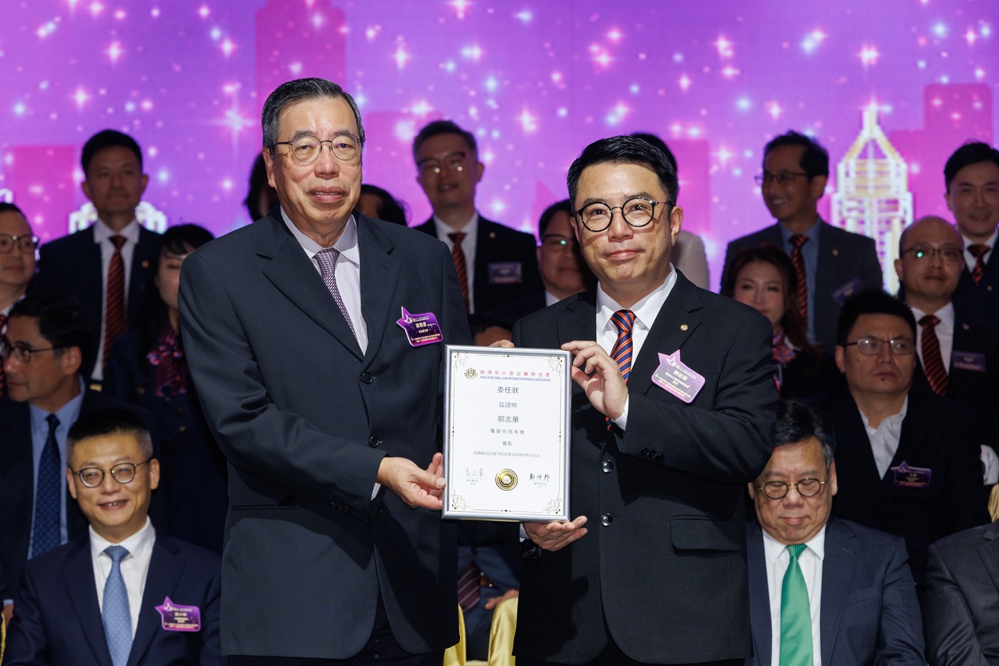 香港中小型企業聯合會第13屆會董就職典禮於11月22日假香港會議展覽中心圓滿舉行。典禮冠蓋雲集,場面盛大,邀請到立法會主席梁君彥先生,大紫荊勳賢,GBS,JP、商務及經濟發展局局長丘應樺先生,JP、中聯辦協調部副部長徐小林先生擔任主禮嘉賓。