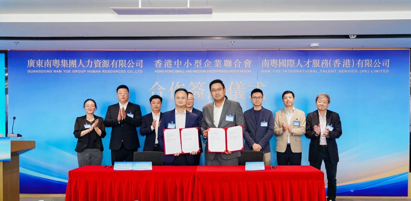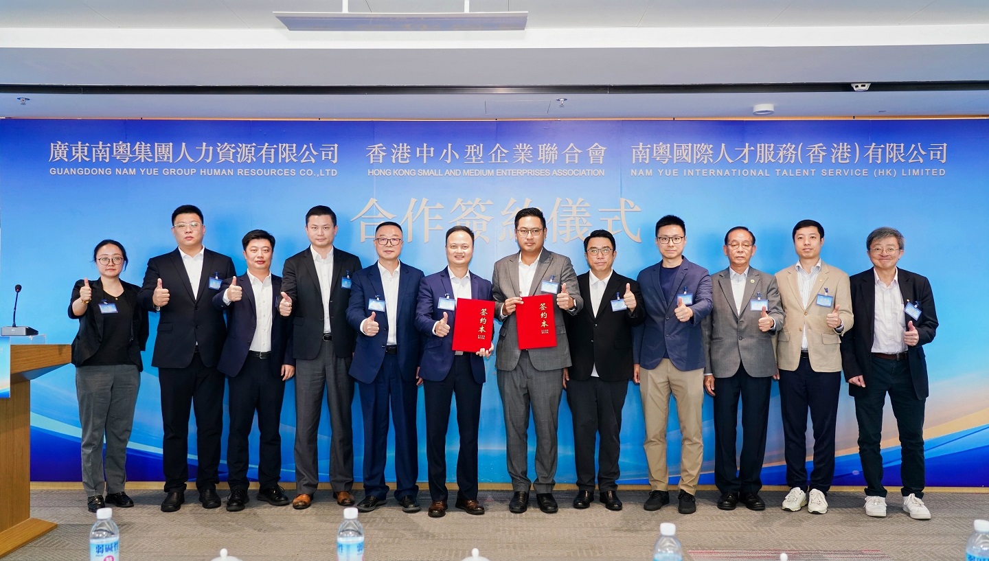 香港中小型企業聯合會與國企 「廣東南粵集團人力資源有限公司」 進行簽約儀式,達成戰略合作共識,共同推動港穗企業資源互通與人才發展!