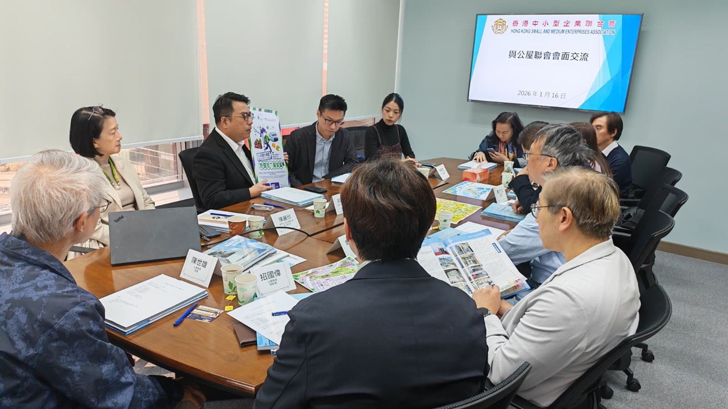 郭志華會長、鄭仲邦主席及陳麗欣第二副主席於1月16日出席公屋聯會拜訪香港中小型企業聯合會